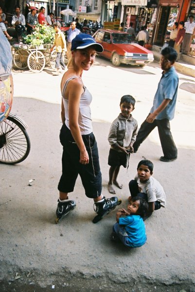 Kathmandu: Kids fascinated with rollerblades