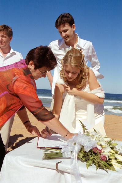 Welcome the Online Photo Album of Robert & Sharyn Fyvie's Wedding. This site is provided for the benefit of our friends and family, for the guests of the day, as well as those unable to be there. The Ceremony took place on North Palm Beach, New South Wales, Australia (about 1hour North of Sydney) at 2:30pm, Sunday 2nd March 2003. The Reception took place at Pasadena on Pittwater in Church Point. | The photos under "professional" were taken by Vivid Photogaphy and Imaging©. Copyrights apply. These have been scanned from the negatives, which I now own, so please contact if you wish to get any printed or digital copies in higher resolution than displayed here. There is also a video available of the day. Should you wish to get a copy, please contact , or and we can arrange one for you. The video was made by , Amethyst Video Productions. |