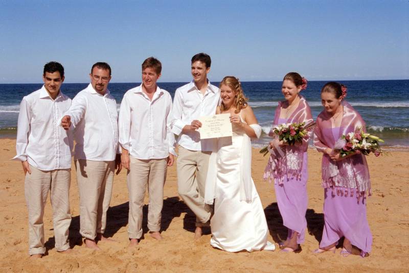 Welcome the Online Photo Album of Robert & Sharyn Fyvie's Wedding. This site is provided for the benefit of our friends and family, for the guests of the day, as well as those unable to be there. The Ceremony took place on North Palm Beach, New South Wales, Australia (about 1hour North of Sydney) at 2:30pm, Sunday 2nd March 2003. The Reception took place at Pasadena on Pittwater in Church Point. | The photos under "professional" were taken by Vivid Photogaphy and Imaging©. Copyrights apply. These have been scanned from the negatives, which I now own, so please contact if you wish to get any printed or digital copies in higher resolution than displayed here. There is also a video available of the day. Should you wish to get a copy, please contact , or and we can arrange one for you. The video was made by , Amethyst Video Productions. |